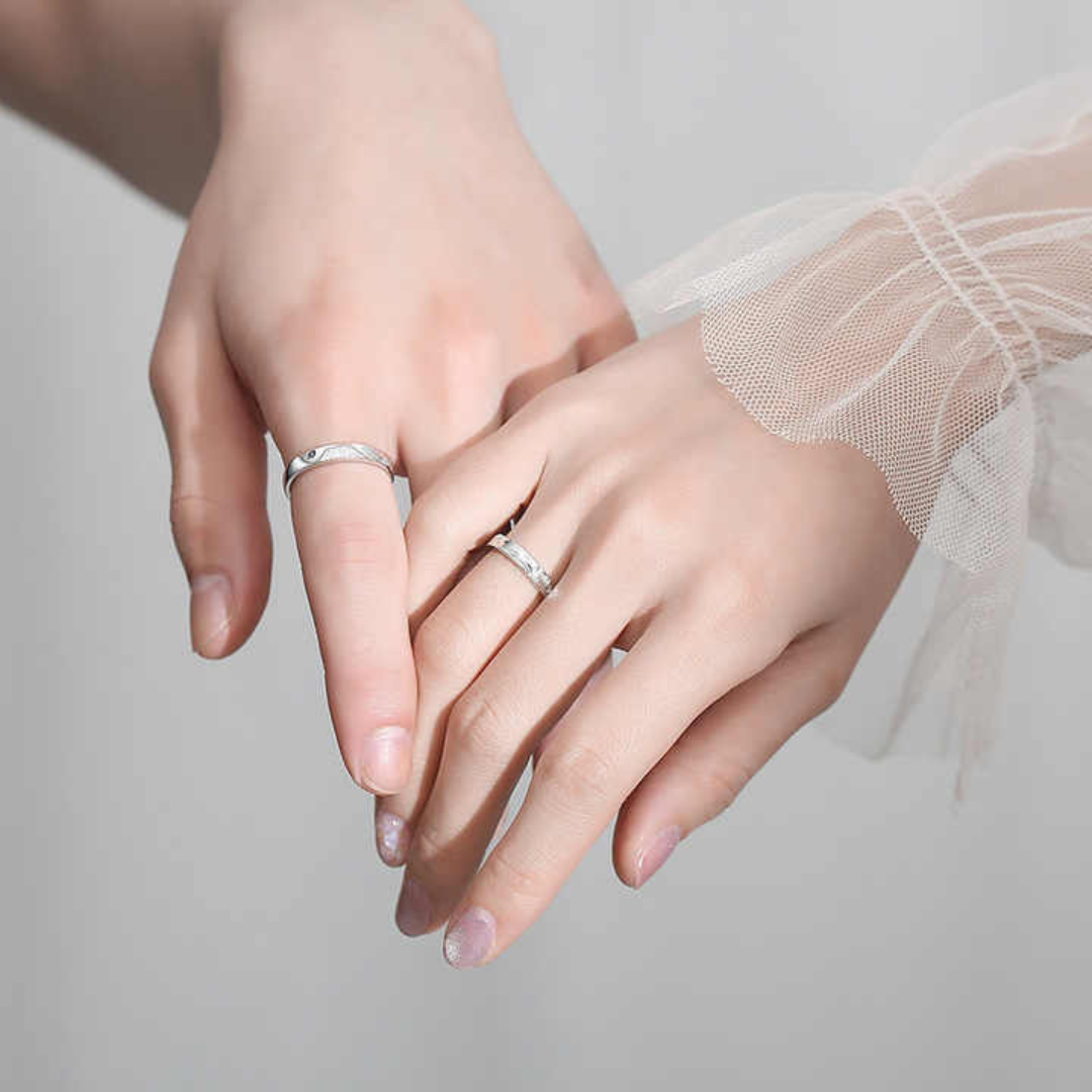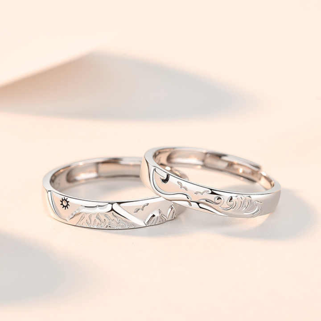 💍 Argollas Mar y Montañas Ajustables Pareja (Enchapado Plata) 💍
